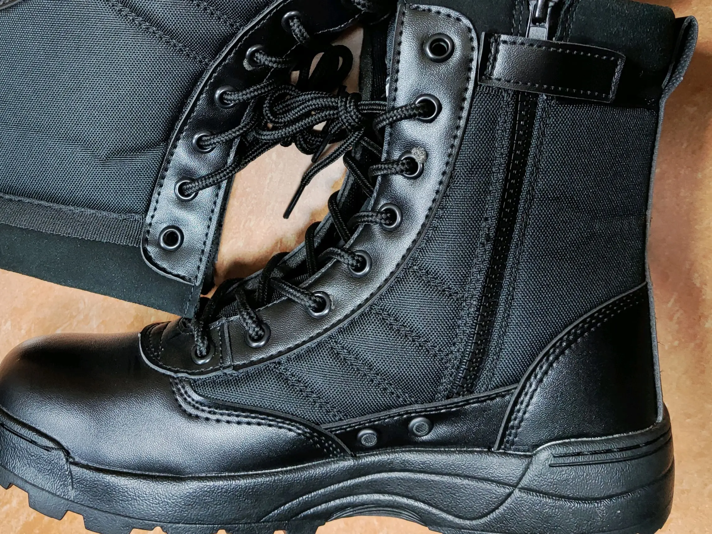 KMS أحذية تكتيكية مخصصة للمشي لمسافات طويلة باللون الأسود مضادة للماء مناسبة للاستخدام الخارجي والأكثر مبيعًا، أحذية قتالية للتدريب والجملة، جزمات تكتيكية قتالية للرجال
